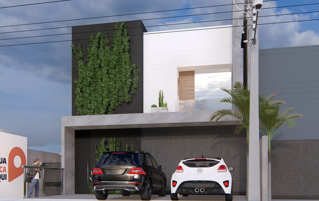 O pavimento térreo conta com um salão comercial de 151,45 m², ideal para receber diferentes tipos de negócios, oferecendo amplitude e flexibilidade no uso do espaço. No pavimento superior, uma residência de 136,84 m² completa o projeto, combinando áreas sociais, íntimas e funcionais em um layout moderno e acolhedor.